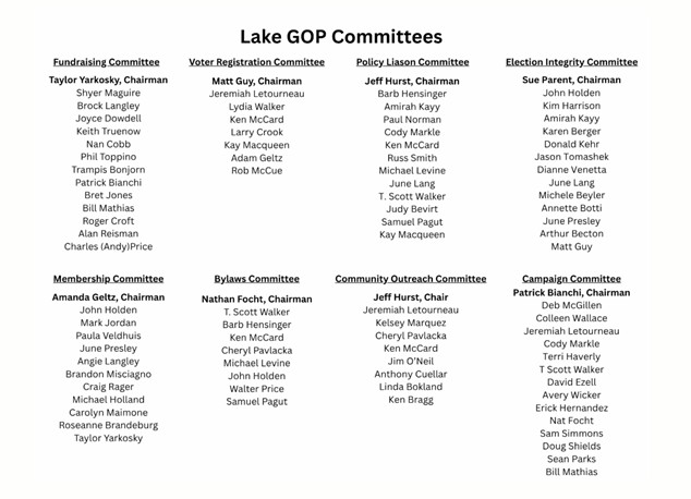 LAKE GOP COMMITTEE ANNOUNCEMENTS